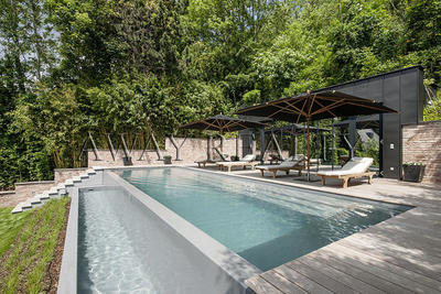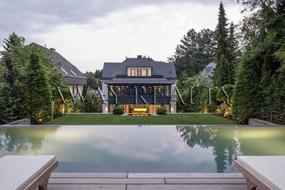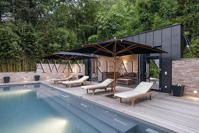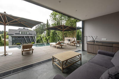 The villa is built in a modern style, using glass, making the room extremely light and airy. It is ideal for families - green beauty spot, a pool, and the next is one of the most prestigious international schools in the area. An ideal place that combines the idyllic country life and the luxury of the Austrian capital.