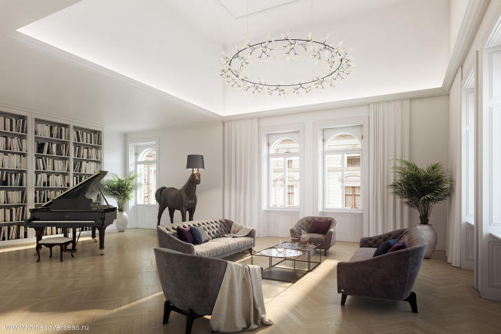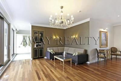 Ground floor: entrance hall, guest bathroom, a spacious living room 58 sqm with fireplace, separate kitchen with equipment from Boffi and a room of 36 square meters with balcony and walk-in, which can be used as a bedroom or study.
