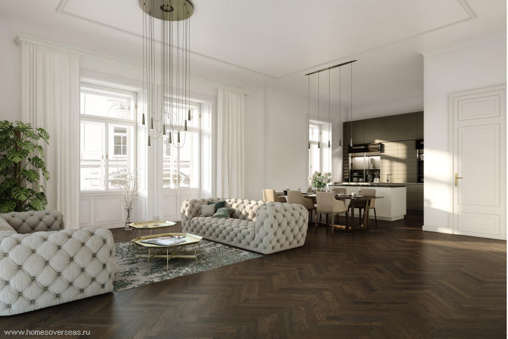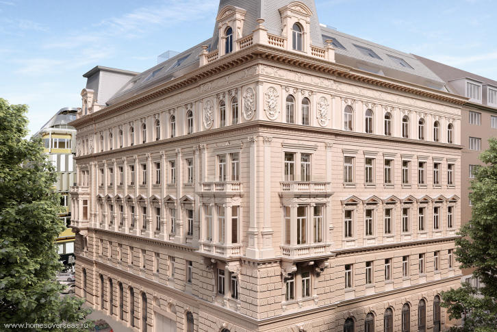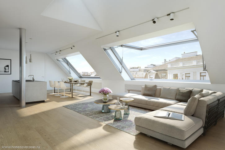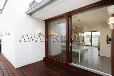 Maisonette occupies the top two floors of the corner house, located on a quiet street in the eighth district of Vienna - der Josefstadt. Maisonette was completed in 2007. The highlight of this apartment is a cozy green terrace with views of the city, located on the roof. The house where the apartment is located, is a fine example of Art Nouveau architecture with an elegant facade and a magnificent lobby.