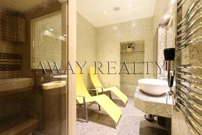 Upper floor: master bedroom with en suite bathroom, separate WC, a sauna, and a lovely terrace-garden with views of the city.