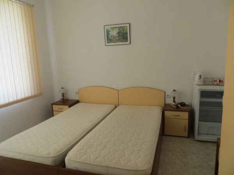 The hotel for sale is located 150 m from the center at a quiet street. The south beach is only 350 m away and the north beach – 550 m from the hotel. The building is disposed on 810 sq. m of living area with garden with 550 sq. m of area. It is built in 2005. The hotel has five floors and comprises 16 studios and two one-bedroom apartments. The capacity of the hotel is 40 beds. It is for sale completely furnished as you can see it on the photos. The opportunity is great for those who are looking for development of business in the Black sea in Bulgaria. In recent years, the hotel was completely full four months in the summer mainly by Poles and Russians, which guarantees future employment.