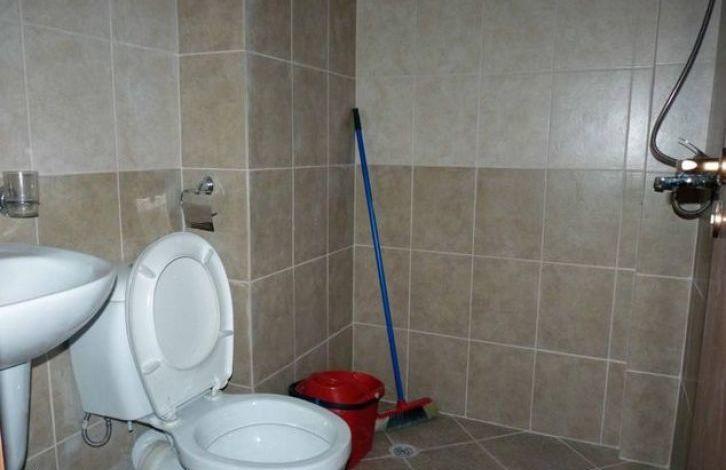 Bathrooms floor tile, wall earthenware tiles, switches. The toilet sideways with drain, sink with mixing tap