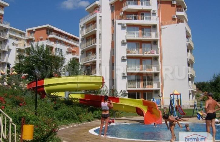 The apartment has a partial sea view with a large terrace and views of the pool from the small balcony. It has all the amenities that you can expect from an apartment of a resort type. It is located in Fort Knox Grand Resort, which includes:
