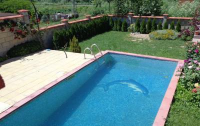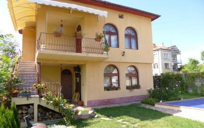 Ground floor: - bedroom, living room, fireplace heating, a kitchen, a bathroom and a veranda. Second floor - 3 bedrooms, bathroom. Landscaped yard, double garage, swimming pool, barbecue. The house is fully furnished, kitchen with appliances. Internet, cable TV. Villa, 3 km from the resort of Albena.
