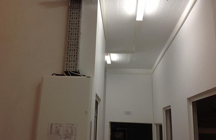 There are storage and utility rooms, air conditioners, equipment.