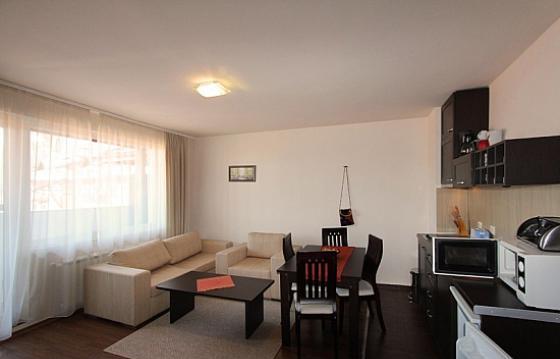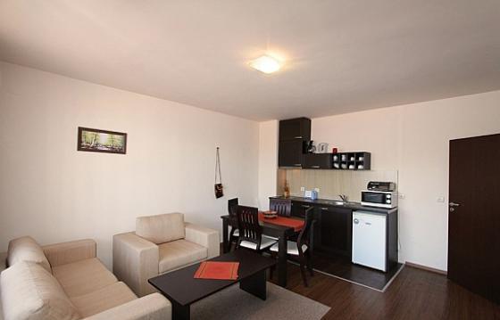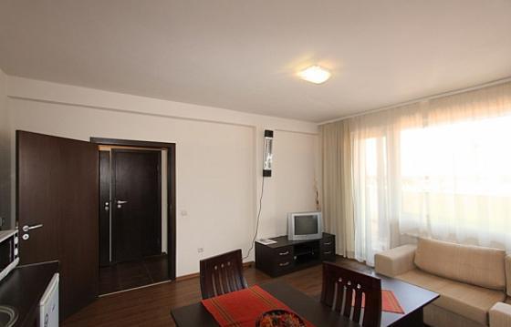 One bedroom apartment in "Bansko Royal Towers" complex, in the international ski center of Bansko. The complex is located 50 meters from the ski lift Bansko, near the shopping center, shops, restaurants, in the center of the infrastructure. "Bansko Royal Towers" offers 24 hour security, reception, parking, a SPA center with an indoor pool, an outside summer pool, internet, television, a restaurant, a lobby bar for owners and guests. One bedroom apartment for sale in "Bansko Royal Towers". Complete furnishing. The apartment consists of a living room with a place for a kitchen, equipped with kitchen furniture and appliances, furniture, TV. The bedroom has a double bed, wardrobe. The spacious terrace of the apartment offers panoramic views. The bathroom is equipped with a shower cabin.