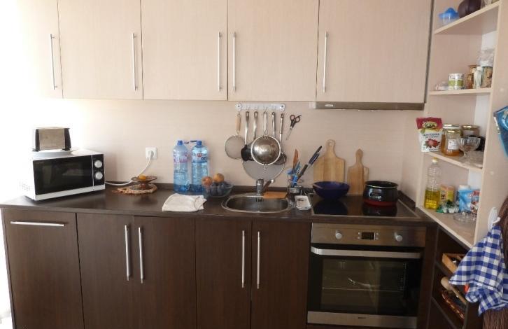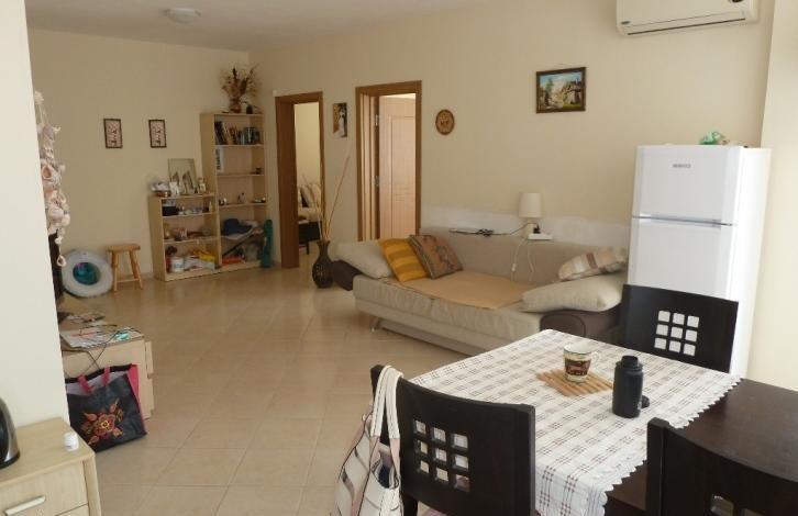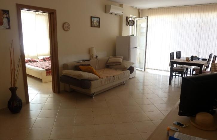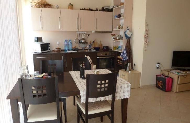 The apartment is located in a complex with a closed territory and a swimming pool, but the maintenance fee is low, only 200 Euro per year. To a large year-round supermarket - 900 m. It consists of a spacious bright living room with kitchen and dining area, 2 bedrooms, a balcony overlooking the pool and a bathroom with shower. The apartment is sold fully furnished and equipped with appliances. An excellent option for both summer holidays and permanent residence.