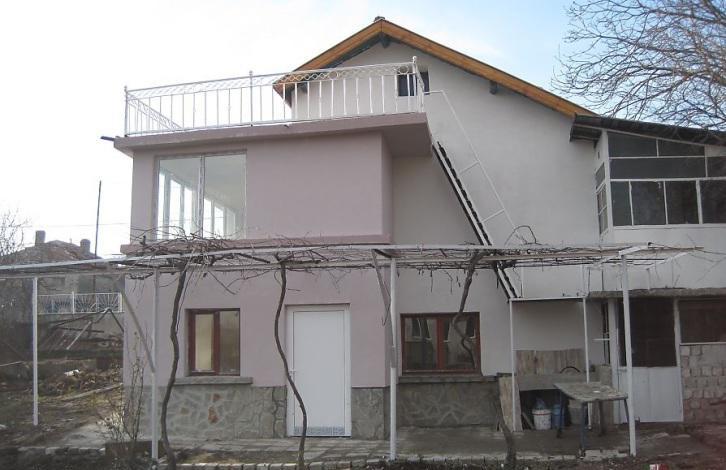 It has the following layout: first floor - large, bright living room with separate kitchenette, two bedrooms (one with a small closet), bathroom with toilet and a hall. An internal staircase leads to the lower floor, which consists of a room with a fireplace and storage space. There is a staircase to the terrace and attic. The house is faced and insulated from the outside, PVC windows are inserted.