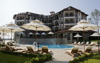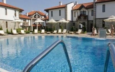 The complex is designed in the old traditional Bulgarian style with wood and stone exterior coatings. The complex consists of five groups of luxury houses Moon, Sun, Eclipse, Sunrise, Sunset - the name, the main theme of purity, beauty and peacefulness of nature. The complex Chairite, you'll feel surrounded by picturesque and pristine nature. The complex is located to the west of Sunny Beach, on the flank of the Balkan Mountains. It combines mountain freshness and coastal warmth. Provides an incredible view of the sea, Sunny Beach, Saint Vlas and Nessebar. Services and Amenities · Russian sauna, Turkish bath, ice room · bar · Biovitaminny · · steam bath, jacuzzi, spa treatments · sauna · different types of massage · lobby bar · pool bar · Bulgarian national style restaurant, tavern with outdoor garden · outdoor swimming pool with a section for children, an indoor swimming pool • Year-round and round the clock security 3262