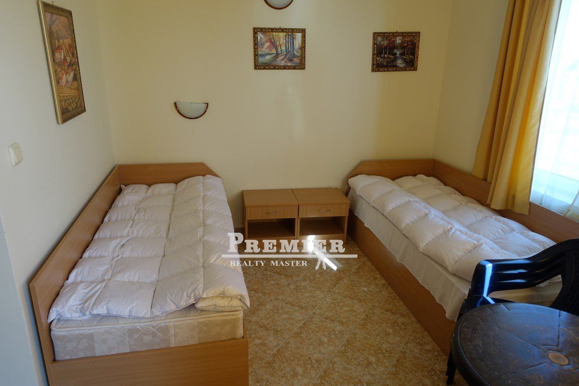 we Offer to Your attention two-bedroom apartment with sea view in Ravda! The village of Ravda is situated South of the popular resort of Sunny beach, near the ancient town of Nessebar. The beaches in Ravda annually receive the international award "Blue flag" for a favorable environment. And the resort is ideal not only for summer holidays but also for living. The complex is located within walking distance from the sea, it offers a developed infrastructure, the pool, recreation areas, cafes, playgrounds for children. The apartment is located on the 3rd floor. The area is 79,40 m2. Distribution living room with kitchen area, 2 bedrooms, bathroom and 2 terraces, one with pool view and one with sea views! The building has Act 16. Maintenance fee is 550 euros per year.