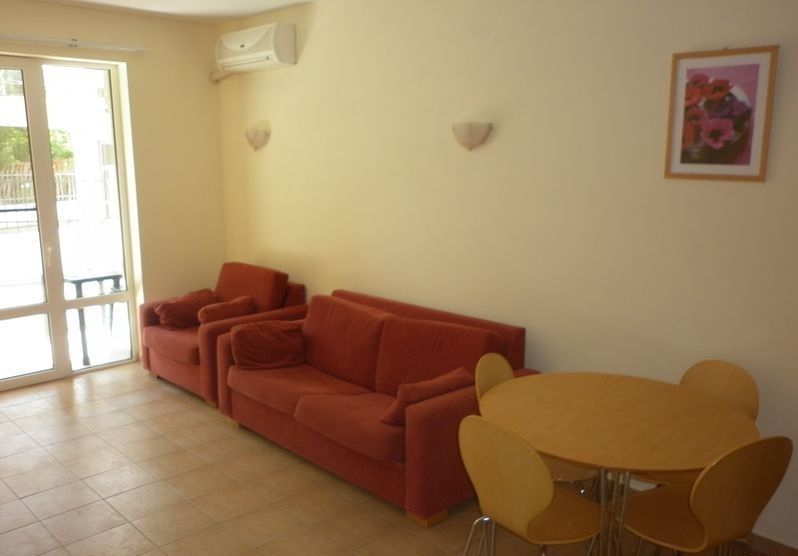 we Offer to your attention one-bedroom apartment in "Dream Holiday" s. Ravda. The apartment is on the first floor ( on the ground). Magnificent property with an area of 65 sqm, located in a gated complex on the beach. Consists of: kitchenette, area with soft furniture, bedroom, balcony, bathroom with toilet. Sold fully furnished. Excellent infrastructure near the building, ecologic clean area near the coast. The building is equipped with: Elevator, Parking, bar, cafe, reception, 2 pools, security. Located 50 metres from the shore. On the beach near the complex there are cafes, bars, sunbeds and water rides. Near the complex year-round shops and restaurants that make it suitable to stay there in any time of the year.