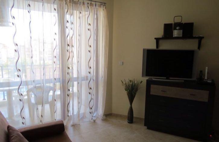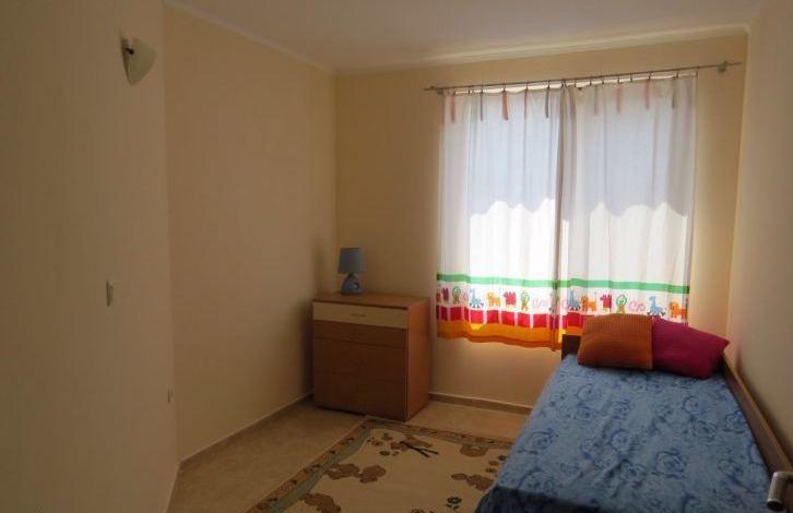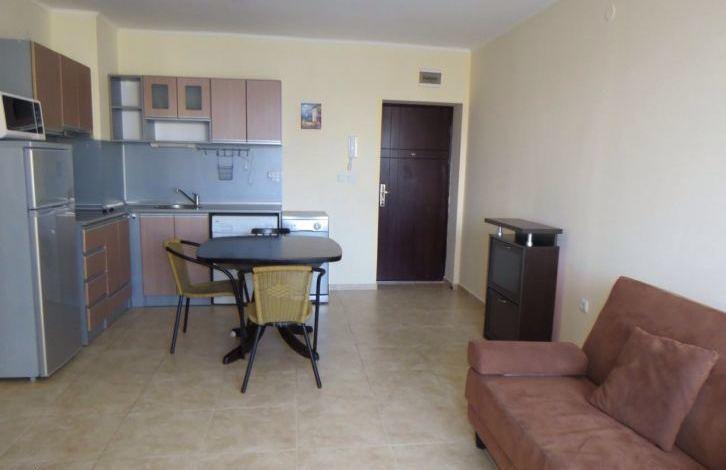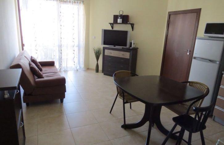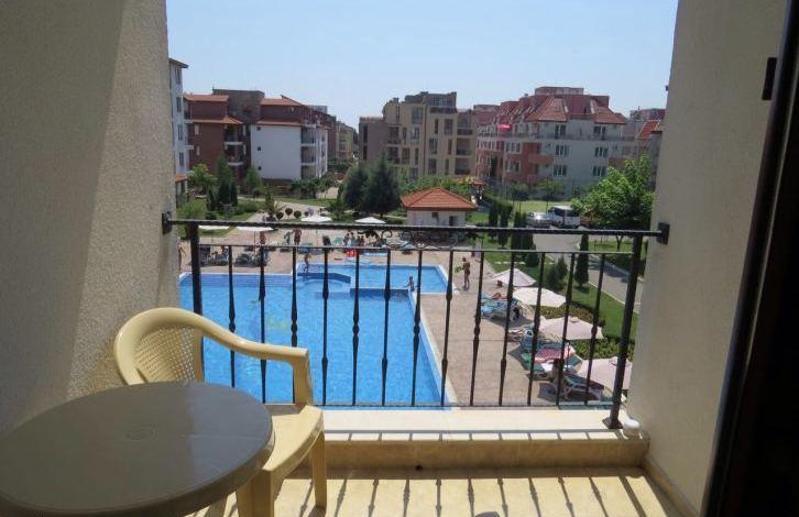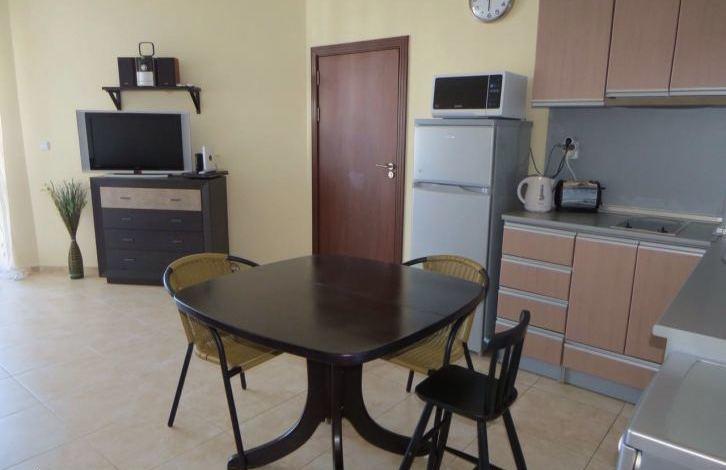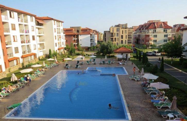 The apartment consists of two bedrooms, living room with kitchen, two bathrooms and a balcony overlooking the pool. The complex with a large enclosed area is located 200 m from the beach between Ravda and Nessebar. On the territory of the complex there are swimming pools, playgrounds, restaurants, a shop, a tennis court, a SPA salon. The apartment is fully furnished and equipped (air conditioning, refrigerator, TV, washing machine, dishwasher and other household appliances).