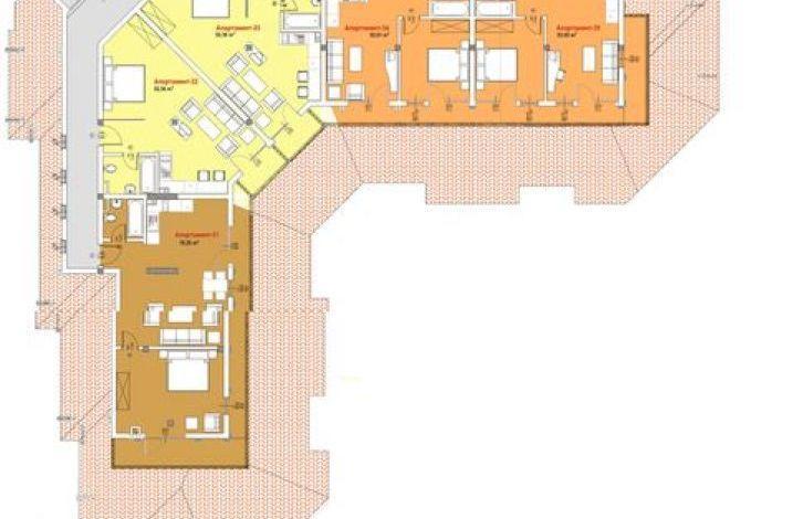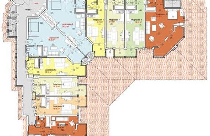 - Апартаменты состоят из одной или двух спален, гостиной, кухонной части, ванной и туалета