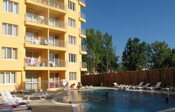 Люксозно меблированный апартамент в комплексе \"Ливи Прадайс\", к.к. Солнечный берег, Апартамент двухкомнатный, на первом этаже, меблированный, с гаражом, лифт. Равернутая площадь 77 кв.м.