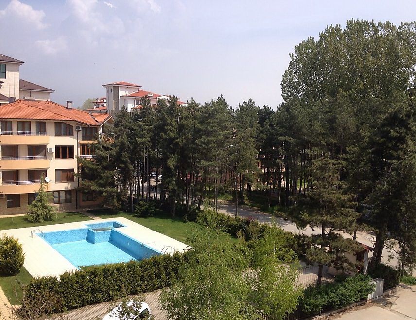 the complex has a large pool, a restaurant and a bar. The apartment is sold fully furnished.