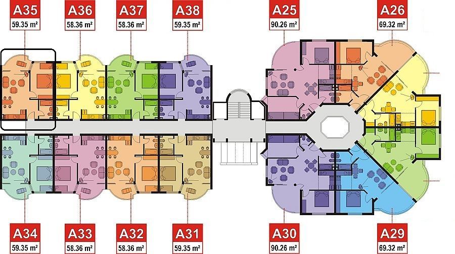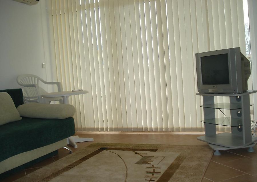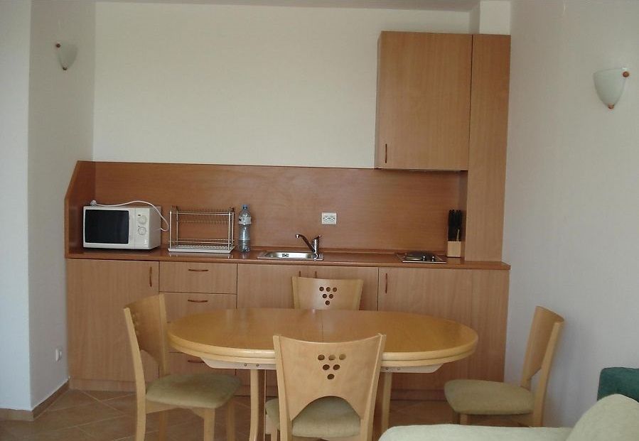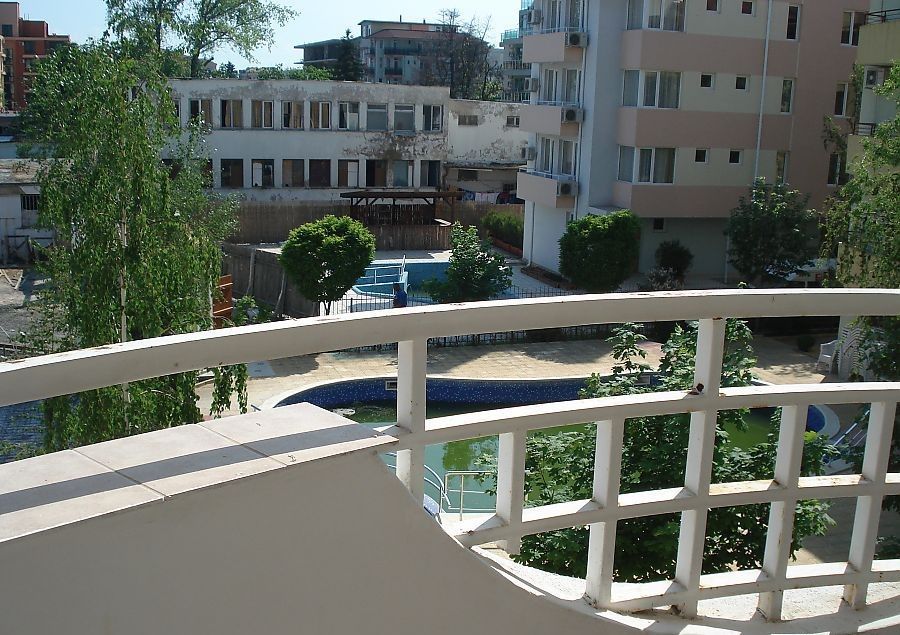 the apartment consists of kitchen-living room, furnished and equipped, one bedroom, spacious balcony overlooking the pool of the neighbouring complex, a bathroom with WC.