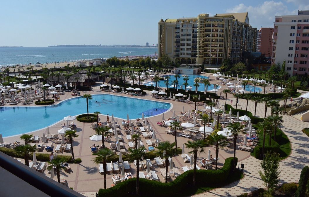 Апартамент находится в комплексе "Majestic Beach Resort", в самой престижной части Солнечного берега, непосредственно на пляже. Общая площадь территории комплекса составляет 56 000 кв.м, из которой 35 000 кв.м - уникальный двор с бассейнами.