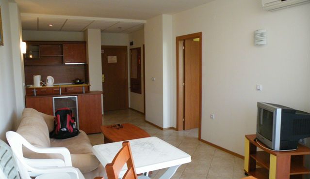 Полностью меблированный апартамент с 1 спальней расположен на 5 этаже в 4* гостиничном комплексе Posidon - на Солнечном Берегу.