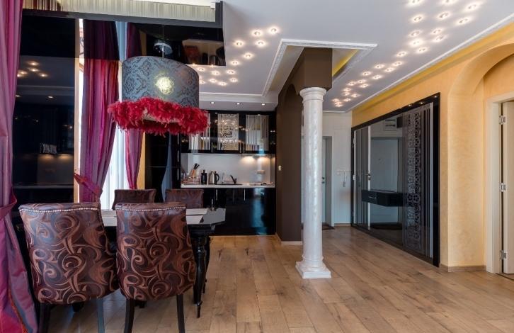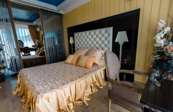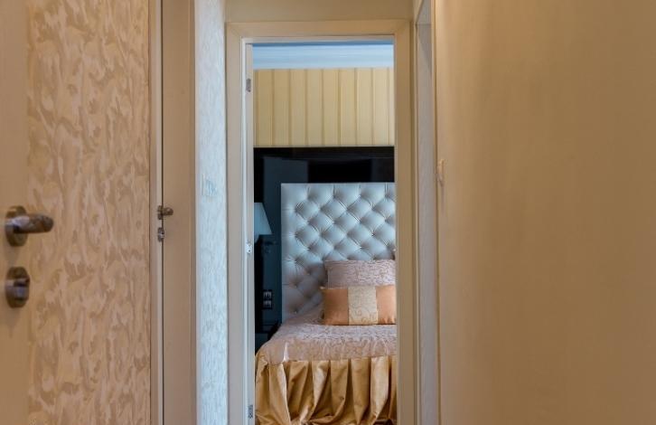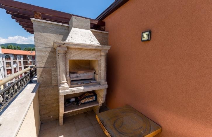 The apartment is designerly furnished and equipped with all necessary appliances. On the terrace there is a jacuzzi and barbecue. It consists of a spacious living room with kitchen and dining area, two bedrooms and two bathrooms. On the territory of the complex: swimming pools, playgrounds, SPA center, restaurant, reception, beauty salon and much more.