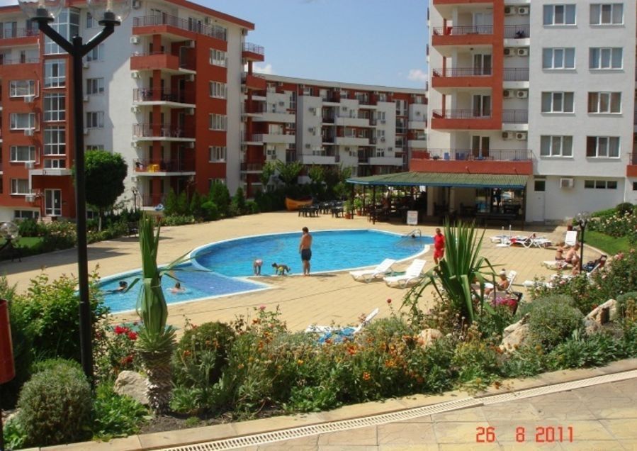 the Complex is located just a few meters from the beach, offers seventeen outdoor swimming pools, children's slides, water rides, a football pitch, a supermarket, shops, security, Parking, huge fenced landscaped area.