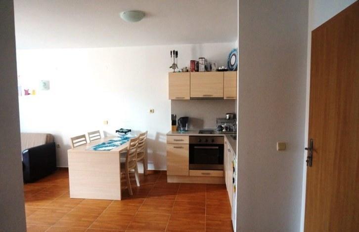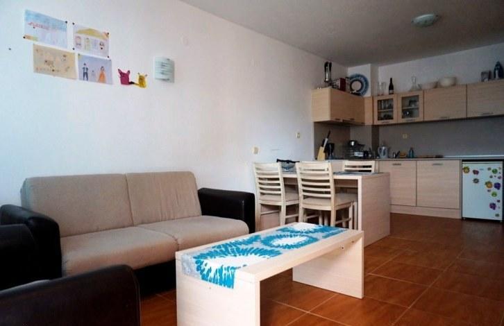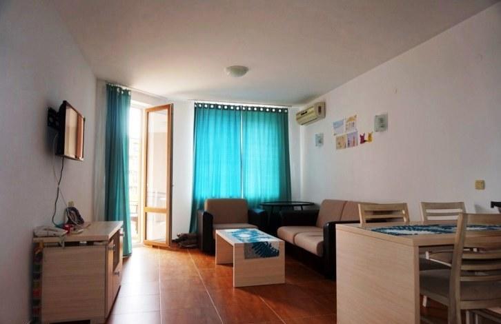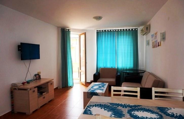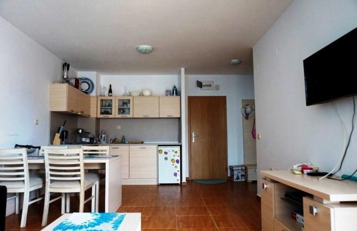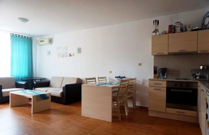 On the territory of the complex there are many services and amenities, including a large swimming pool for adults, children's pool, children's playground, tennis court, restaurant, reception. The apartment is on the 2nd floor and consists of a spacious living room combined with kitchen, one bedroom, bathroom with shower, balcony overlooking the pool. This option is great for both summer family vacations, and for renting, and for year-round living!