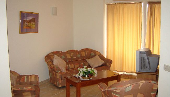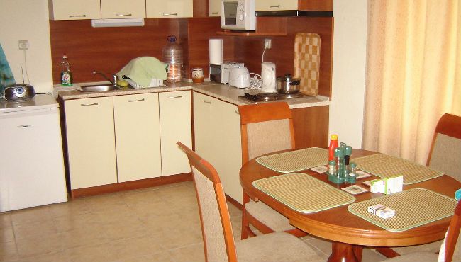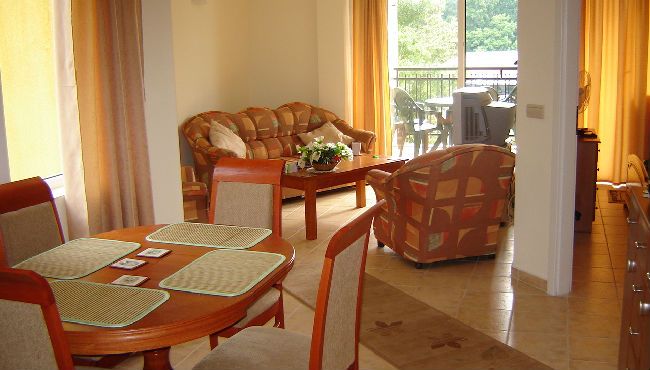 Апартамент, полностью меблирован и оборудован, расположен на 3 этаже четырех-звездочного комплекса со всеми удобствами в к.к.Золотые Пески, в около 600м от прекрасного песчаного пляжа.