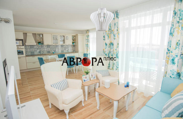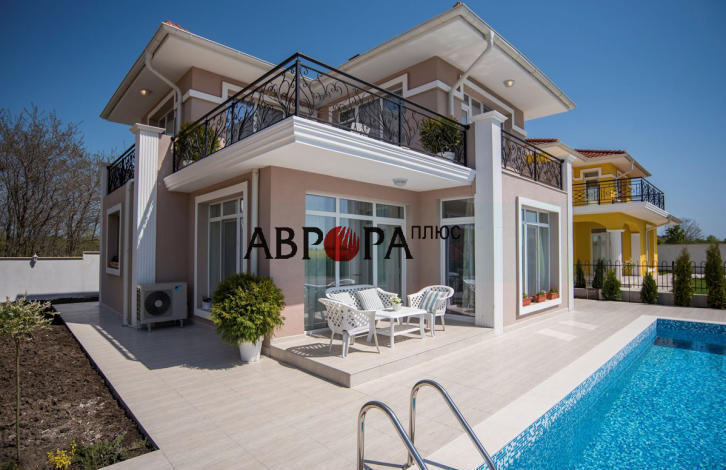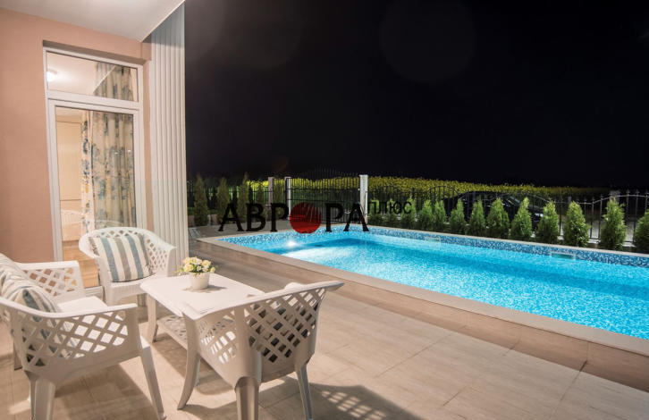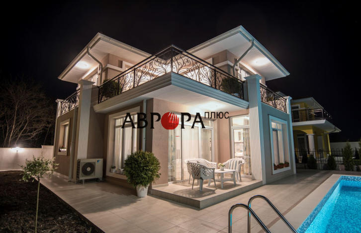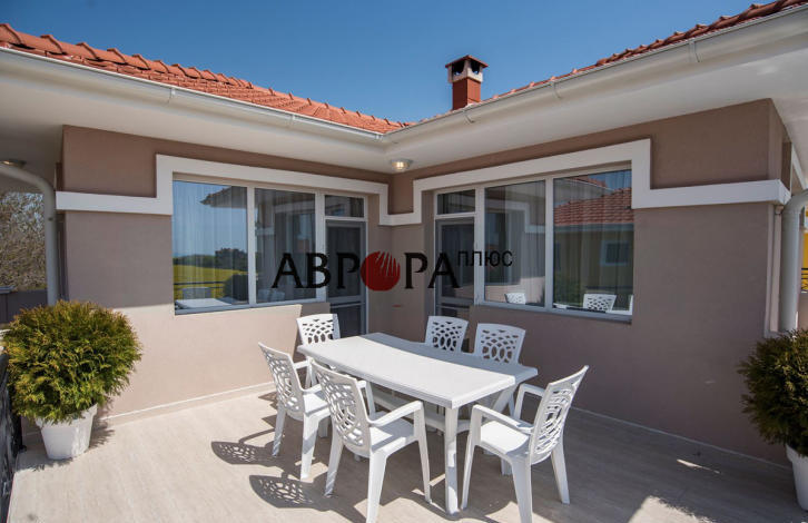 For sale is a new 2-storey house with a swimming pool, located in the quarter of Sarafovo. The house has an area of 155 sq. m fully equipped with furniture and appliances, located on a plot of 400 sq. m