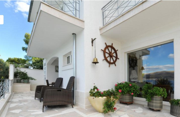 Villa on Ciovo Okrug Donji. Baywalk. Three floors, each floor one independent kvartira. 3 floor - bedroom 13m2, wardrobe 6m2, bathroom 9m2, 11m2 living room and kitchen of 10m2, 24m2 terrace overlooking the more. 2 second floor - a room of 17m2, 10m2, bathroom 8m2, living room with kitchen 18m2, 10m2 terrasa. 1 floor - bedroom 12m2, bathroom 5m2, living room 39m2, 40m2 terrace. Stairs Vedu 20m2 bedroom with dressing room and bathroom 12m2 8m2. Vo second auxiliary building a sauna, laundry and storage room of 9m2. On the roof of the garage 24m2. Na the ground floor is a swimming pool 5 x 8m2, with heating and hraneniya. Zemlya 1000m2. Beautiful view.