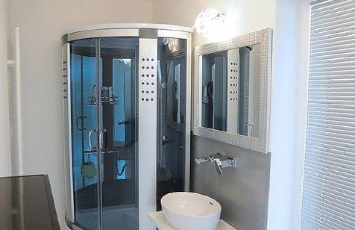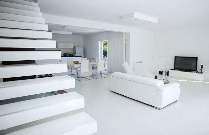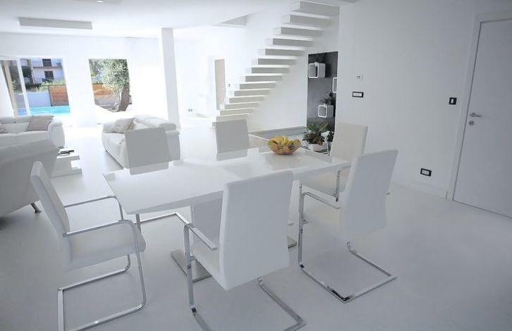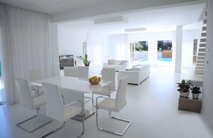 the Villa is built in 2012, with an area of 210m2, modern interior with a predominance of white, filled with sunlight throughout the day. The Villa consists of 3 bedrooms and 4 bathrooms. All bedrooms are on the second floor, each has its own bathroom. Fully equipped modern kitchen with glossy surface, high quality ceramics, two outdoor terraces with wooden floors. In each room, panoramic glass sliding wall. The house has gas Central heating and Underfloor heating.