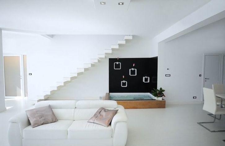 the living room opens to the beautiful garden with swimming pool with an area of 25m2. On a plot of 430m2 is also a barbecue, outdoor terraces, quality garden furniture for relaxing.