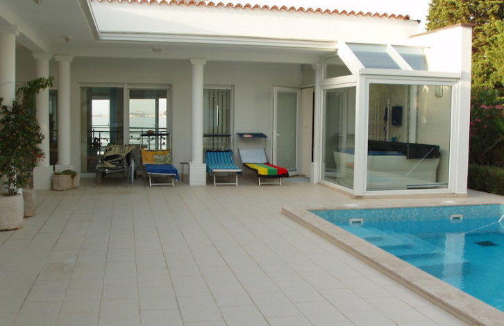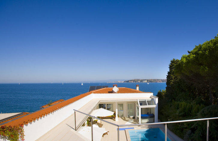 Villa, 450 m2, two separate houses, Savudrija Above the Savudriya Bay, a beautiful villa is located, located on the first line of the sea. It consists of two separate residential units, more precisely apartments. The villa is built cascade, in front of the house there is a fenced parking for 4 cars with automatic gates. The villa is hidden from prying eyes. Floor and lay-out The total area of the property is 450 m2, which includes living areas, staircases, basement floors, terraces, atriums, an open area. The top apartments, with an area of 120 m2, have the following layout: 2 bedrooms, living room with kitchen and dining room, bathroom, staircase, boiler room, summer kitchen. From the bedrooms there is an exit to the terrace, which offers a magnificent view of the whole bay. The stairs of the track lead directly to the sea, where there is a pier and is equipped with a descent into the water. The area of the lower apartment is 320 m2 + 30 m2 gallery. The apartments are located on top of the cliff, so they have a beautiful view. There is a jacuzzi, a bathroom, 2 bedrooms, a two-level living room with panoramic windows, another spacious living room, a kitchen with a dining room, a bathroom, a small storage room, a boiler room is located on the ground floor, and there is another storeroom. Equipment and materials The flooring in all the facilities is granitogres. The house has central heating, a fireplace in the living room. The lower apartments have a spacious terrace with a stone table and benches. The plot itself goes directly to the sea and is at a height of 20 m from the water. On the one hand, the object has a panoramic wall, on the other - a hedge Location and infrastructure In the immediate vicinity of the facility there is a golf course, as well as places for walking. This area is considered the most popular in Istria, here is also located a luxurious five-star hotel Kempinski. The villa offers a luxurious view of Piran, Portoroz and the whole bay. Additionally The object is registered in the land cadastre. There is an opportunity to buy one of the two apartments. (PH15742225AB)