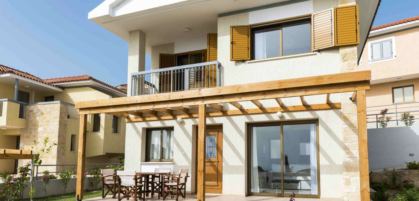 Konia Panorama – this is one of the most impressive projects of the company located in the picturesque village of Konia.Double Villa – Type 13 with panoramic видом1 toilet and 1 bathroom connetablie balconies and verandas, covered with ceramic pitcaithly saccata parkability pool (optional)Pergola