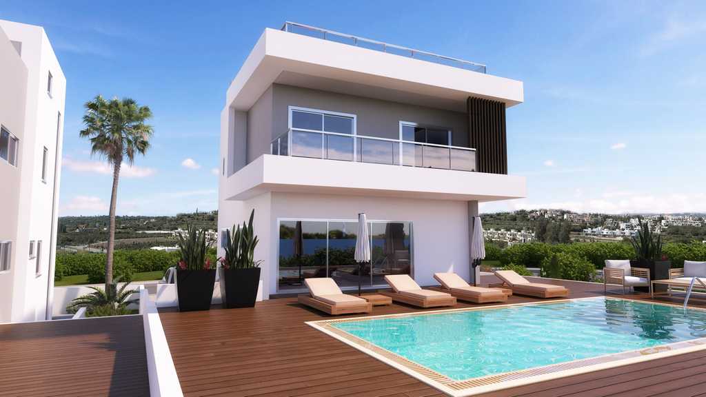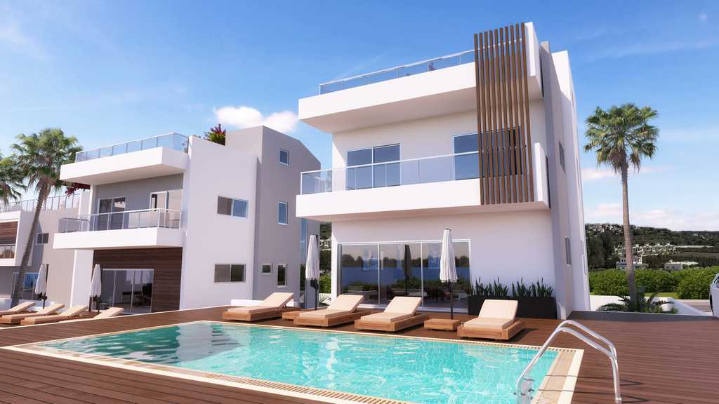 Luxurious villas with excellent investment potential as they are located just 3 minutes from the newly designed Marina of Paphos and 10 minutes from the city centre.The villas offer unobstructed views of the Mediterranean sea and a private infinity pool.Features Complete installation of the cable system to the Central structure for television, phone and computer throughout the Villa. Setting audio / video input gates to the entrance to the road with checkpoints inside the Villa. Air conditioners split-type, inverter type (cooling / heating) in the bedrooms and the living / dining room Electric, energy saving, wall-mounted heating units (or heated floors for the villas 4 and 5) Full installation of burglar and fire alarm Solar system, containment system water roof Gardens with access via internal staircase, garden furniture, shower, toilet, barbecue, countertop, sink (hot and cold water) and refrigerator. Bright and airy kitchen area and living room with suspended ceilings and fireplace Bathrooms finished with high quality marble tiles, suspended ceilings and high quality cosmetological, plumbing, accessories and mixers Touch lights in the Parking area and main entrance door Private infinity pool with surrounding patio paved with natural granite tiles anti slip.stone or synthetic wooden deck energy-Saving functions for maximum heat and noise insulation (8 polistirol on the walls and the roof), with a certificate of energy efficiency Basement that can be designed in accordance with the technical requirements of the client and includes a Wellness room, gym, cinema, utility room, bar, wine cellar, Jacuzzi, sauna, pantry, etc D. In addition to the mechanical / electrical room and control room server / video surveillance. Total covered area Total area roof Garden the plot Size Price (m2) (m2) (m2) (m2) (EUR)Unit # 1 257 315 85 370 1 250 000 Unit # 2 258 290 70 370 1 150 000 Unit # 3 257 292 75 379 1 150 000 Unit No. 4 295 335 415 90 2 100 000 Unit # 5 295 358 415 90 2 180 000 notes: • the Price is not levied for the transfer.• Price are subject to 5% VAT.
