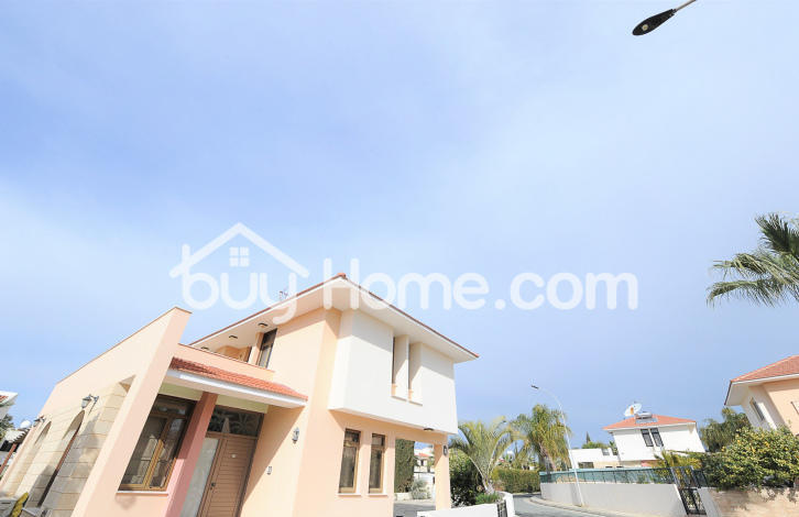Buyhome Estate Agency is pleased to welcome to the market this attractive 4 bedroom villa located only 50 meters from the beach. This villa is located in a gated complex, sits on a large 520 m2 plot and there is plenty of space for a swimming pool if the new owner wishes to install one. One of the 4 bedrooms is located downstairs and the master bedroom is upstairs with en suite and a utility area. Generally this villa boasts large, spacious bright areas and combined with the fantastic sea views of the crystal blue. . This villa and area must be seen to be truly appreciated. Viewings by appointment.