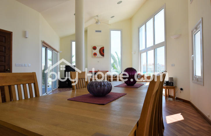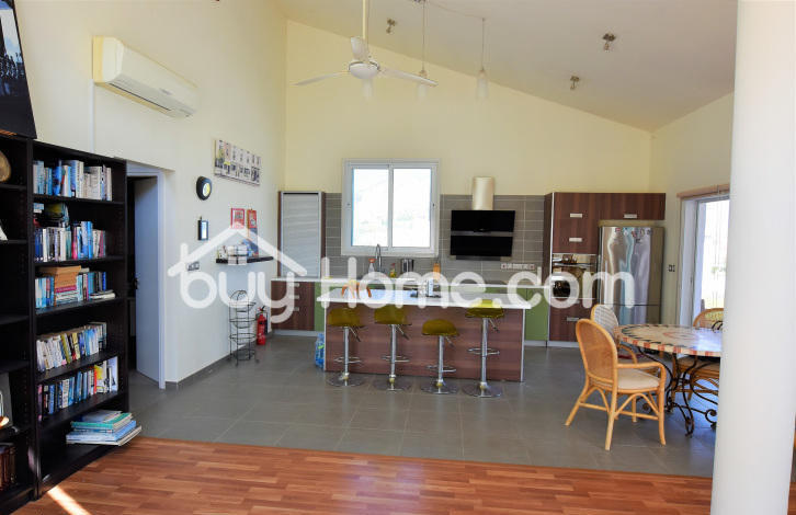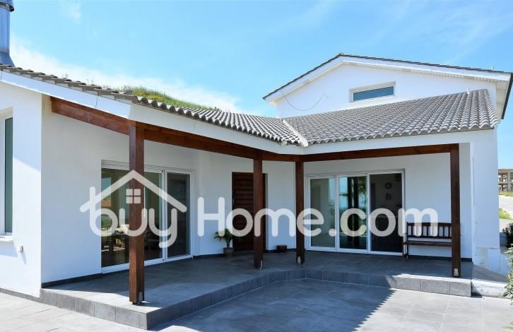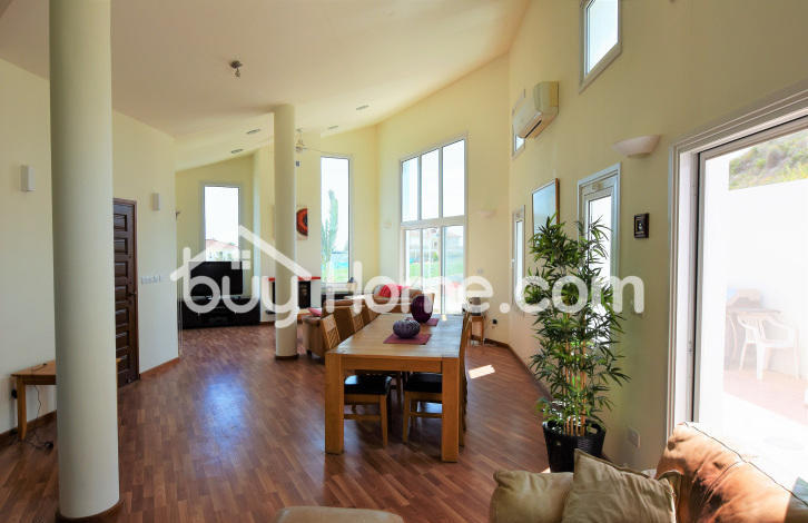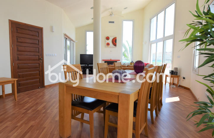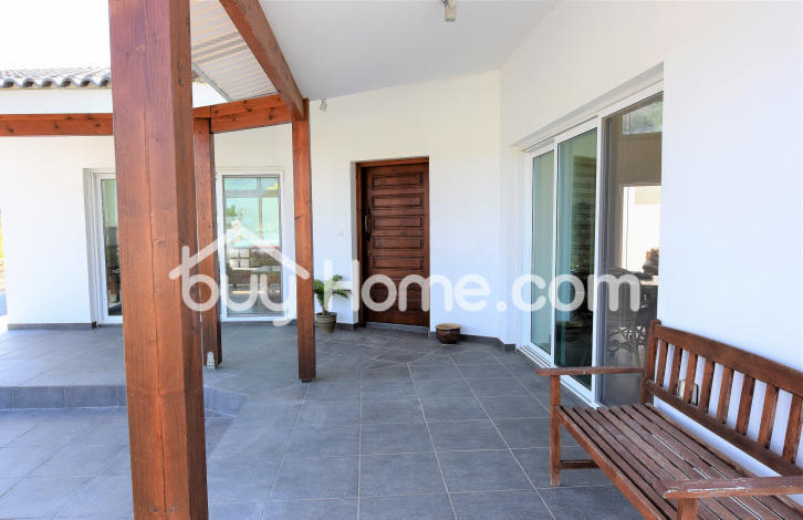 Comfortably located in an elevated position in the extremely quiet part of Oroklini village. This beautiful detached property is unique in every sense. This custom built timber framed property offers floor to ceiling windows offering beautiful views of the surrounding areas, including distant sea views. Spacious and bright you are welcome, with a modern, open plan, sitting, dining and kitchen area. The kitchen has an electric unit. The sitting room offers an attractive wood burning stove / fireplace. The ground floor also has a guest WC, a comfortable utility room and a very comfortable master bedroom with a large bathroom and walk in wardrobe. Upstairs has two separate bedrooms with ensuite bathrooms and an attractive open landing overlooking the ground floor. A pool with a hot and cold pool, a mature shrubs and off street parking completes this beautifully well-kept home. Viewing is strongly recommended. & nbsp; & nbsp; & nbsp; & nbsp;