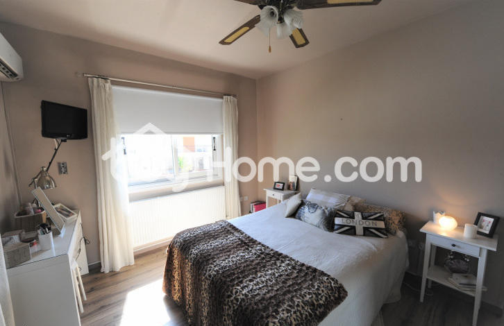 Positioned in Larnaka in a culdesac is this 3 bedroom semidetached house that has been recently renovated. Downstairs we have the living / dinning room area, a separate kitchen, guest wc, and another room used as a kitchenette-utility room. Also there is a covered garage that can accommodate 2 cars. Upstairs we have the 3 bedrooms, one of them is also equipped with a family bathroom. Outside areas offer barbecue area, seating area under a pergola and more Viewings by appointment.
