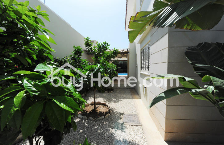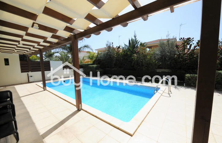 Situated in an exclusive coastal area and part of a private gated complex, this wonderful 4 bedroom detached house has only 150 meters distance from the beach. With mature garden, barbecue area and private swimming pool, the outside areas set the tone for relaxation and rejuvenation. Inside we have a large bright open plan living room with kitchen, bedroom and a guest w. c. Upstairs there are 3 double bedrooms, one of them a master that has its own balcony and additionally a family bathroom. In general this property is set on a comfortable sized plot of land with ample space for entertaining. An ideal investment for someone looking to reside in a quiet area adjacent to the beach. Viewings by appointment