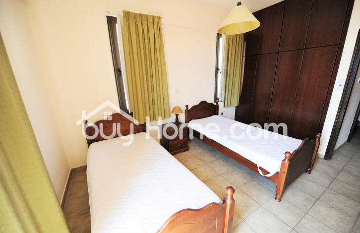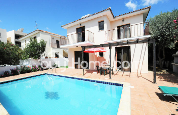 Situated on the outskirts of Oroklini village, in Larnaka, this majestic 3 bedroom house with swimming pool sits among another 8 houses in a small private complex. As you enter the property you immediately realize that this house has been well maintained. The ground floor comprises of a bright and spacious living room overlooking the pool and a separate kitchen and dining area. There is a guest w. c including a shower, perfect for using straight after the beach or pool. Upstairs comprises of 3 bedrooms, one of them boasting a large balcony with pool view & an en suite, the other also with a large balcony wonderful for catching those morning rays of sun shine and the third bedroom with mountain views. There is as well a family bathroom, very practical because it offers a bath and a separate shower that is divided by a wall so 2 persons can shower at the same time in privacy. Outside of the house is an oasis of olive, palm, bougainvillea and banana trees along with rose and jasmine bushes, yes its mature garden really does set the mood for relaxation and rejuvenation. The swimming pool along with the barbecue, pergola area makes family and friend gatherings quite a pleasant and comfortable experience. The house has a covered garage, also there is a green area opposite of the property, so there can never be anything built and if required the private residence of this complex can use the communal tennis court. The current owner has been letting this house out short term as a summer home, so the new owners have the choice of using it as an investment opportunity(income) or having it as a holiday house or a family home. Title deeds available.