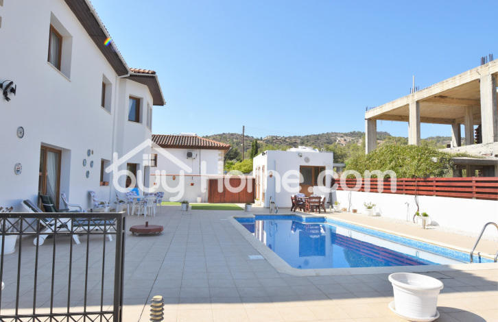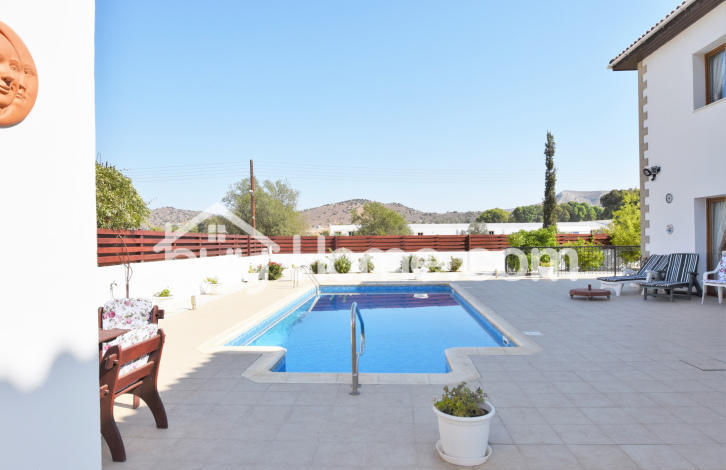This magnificent property with high quality finishes is situated in the residential area of Psevdas. Boasting spacious living areas for a bright and cozy atmosphere, and sits on a plot of 701 m2 land consisting of swimming pool, outside shower, WC and many areas for entertaining on those summer nights. The garage caters for 2 vehicles. A very spacious kitchen with extra utility room. 2 seating areas with many windows allowing much light. The upstairs offers 4 bedrooms, 2 bedrooms have access to en-suite. The main bathroom offering a luxury corner bath. Time and effort has been used to both the exterior and interior for a high standard of living.