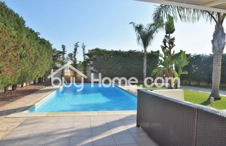 This majestic detached house is set on a plot of 546 m2 and covered area of 163 m2. The spacious living room with a kitchenette, a master bedroom and 2 more bedrooms. Outside is the beautifully landscaped garden, with a swimming pool. The property is located in a private gated complex.