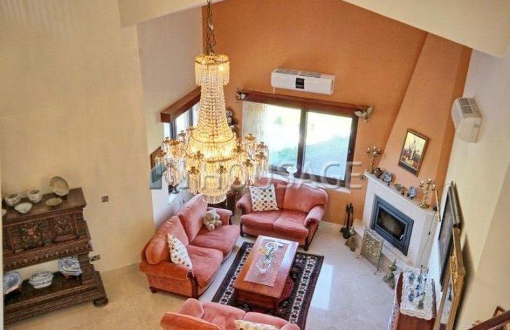 Spacious villa in Paphos with 4 bedrooms and 4 bathrooms is located on a plot of land with an area of 2034 m ^ 2. An open plan lounge with dining area and kitchen, as well as a fireplace. High ceilings and excellent quality of interior decoration. Spacious rooms with access to the veranda with stunning panoramic views of the mountains. The villa is fully equipped with soft furniture and household appliances. Title in stock.