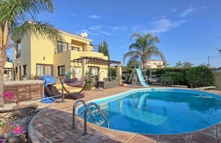 Villa in Paphos, the area of Sea Caves. The villa is located 400 meters from the sea. Three bedrooms, two bathrooms, private pool, garden with fruit trees, parking for two cars, spacious verandas. The area of the plot is 954 m ^ 2. The villa is equipped with soft furniture and household appliances. Quiet and peaceful place, a short drive from the town of Paphos and the famous beaches of Coral Bay. A 5-minute drive to the zoo, English schools and kindergartens. Title in stock.
