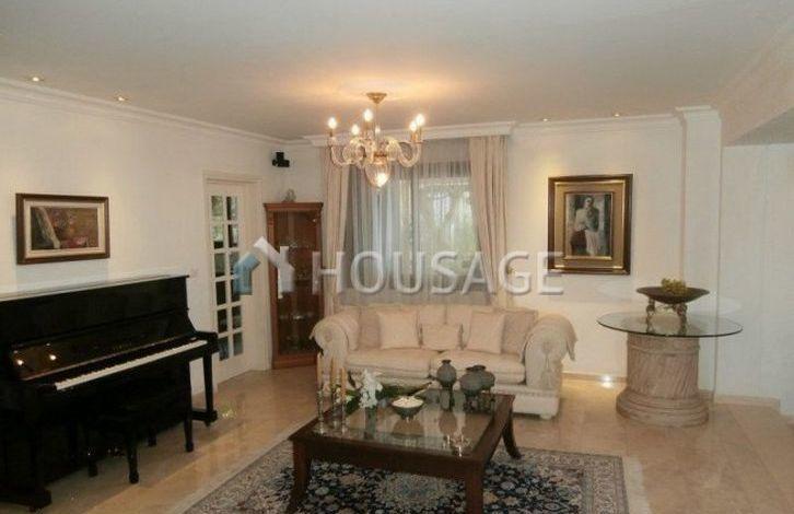 At the entrance to the house on the right is a spacious and well-decorated living area with a stone fireplace and a dining room. To the left there is a large kitchen, guest toilet, utility room and bathroom and toilet. The kitchen worktop is made of granite and the kitchen is equipped with high-quality home appliances. A comfortable staircase leads to the second floor, another staircase leads to the garage. On this floor there are three bedrooms and a family bathroom, the main bedroom has a living area with a TV, private bathroom and a dressing room. A few steps to the services of guests is a beautiful and warm cinema room with a fireplace.