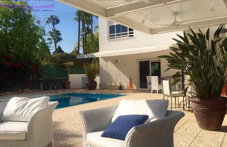Four-bedroom house plus one bedroom in the basement, located in Armenochori area, Limassol. Plot area 996 m2, covered area 350m2. Kitchen, big dining room, living room, guest toilet, 4 bedrooms, double bathroom, master bedroom with shower room + steam. Swimming pool with salt water, garden, c / h, 17 years old.