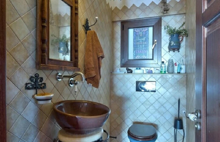 The next villa is located in a very prestigious area on the Green area, close to the Germansogia. There is a panorama of the village and the sea. House has a specific lux touch. It consists of 3 levels, with total covered area of 203 sq. M. Has a garage for 2 cars and a huge veranda in the back with a landscaping garden with the fruit trees. There is a provision for the tte pool which can be placed on the back yard. For safety reason the pool was covered by the owner with ceramic. It can be reopen at any time. Also the villa has the following: Fire place, central heating, sauna. On the ground floor there is a kitchen, Living area with the fire place and the panoramic windows and guest Wc. In the lower ground there are 3 bedrooms. Master bedroom with walking closet. Large bathroom with shower and large circle. In the basement there are 2 more bedrooms, one is en suite with a shower. The basement has a separate entrance and could be easily used as a maid room.