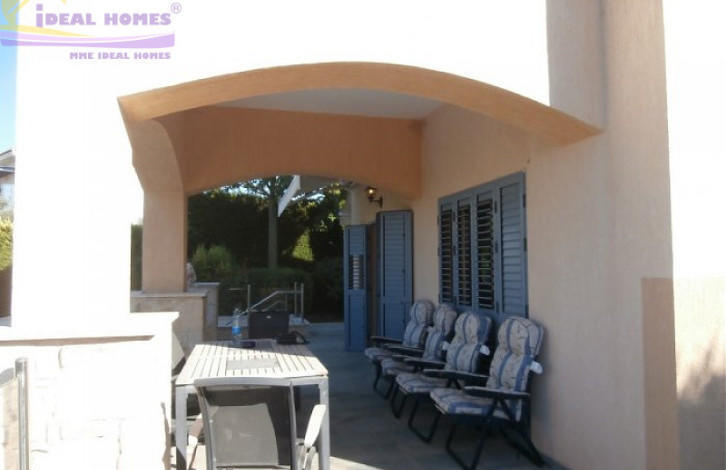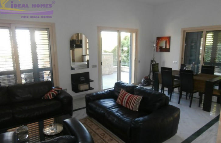 The walls of the house are lined with stone, covered parking is located next to the house surrounded by various flowers and plants. The house is located in a gated complex close to the beach. Climbing the stairs to the front door you enter the kitchen with an open plan living / dining room, which is a step below. The kitchen is fully equipped and has granite countertops. The door from the kitchen leads to the garden with a seating area and a barbecue area. From the dining and living area with modern designer furniture, you have access to a veranda overlooking the pool, garden and sea. On the ground floor there is a cozy bedroom with a shower room and a spacious kitchen and living room.