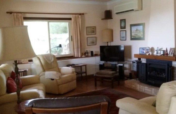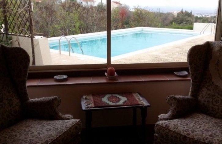 Going down the stairs to the magnificent villa we encounter an arched entrance and a garage to the right of the house, the house is in good condition. A wooden front door opens into the hallway further you pass to the living room with a gas fireplace, going down a couple of steps below. From the living room you can go to a separate kitchen with a utility room and a dining room with a seating area. There is a separate bedroom / office on the first floor and a guest toilet. Under the stairs behind the wooden door is a dressing room. As you climb the wooden stairs you get to the main bedroom on the right. The master bedroom has two wardrobes and a large bathroom that includes a bathroom and a shower. To the left of the landing there are two bedrooms and a family bathroom. The hall and dining room have sliding doors leading to a large covered patio which includes a living / dining area and its own bar where you can enjoy a cocktail. The swimming pool is a few steps away from a mature and colorful garden with various plants, bushes and flowers perfecting the scenery. Various living areas were created around the villa to relax and spend a lot of time in the sun. There is an orchard with a lot of fruit trees and a path that leads to the maid's room and a second garage. The house has its own well. There is a title.