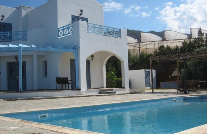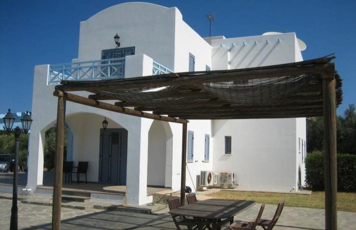 Are you looking for a spectacular sea view villa just across from the beach? This property will be for you! This villa is beautifully designed in true Cycladic style architecture, nestled on the hillside above the beach of Agia Marina village, where you can relax overlooking the magnificent view to both to the Mediterranean Sea and Akamas Bay. 4 Bedrooms . 4 Bathrooms . Fully Furnished with Top - Notch Specifications and Finishings . Covered Area : 180 m 2 . L arge Plot Size of 2400 m 2 planted with olive trees, plants and bushes . Panoramic Views of the Sea and Akamas Bay. Walking Distance to the Sea . This villa boasts a spacious lounge with open plan dining area and a high quality kitchen with granite work tops complete with silver electrical appliances . One out of the four bedrooms is situated on the ground floor offering en - suite facilities ; a guest cloakroom is also available on this floor. A marble staircase leads to the first floor where you will find a massive master bedroom with fitted wardrobes and en - suite shower opening to a large veranda, a family bathroom, a second bedroom with balcony and a third bedroom all en - suite .