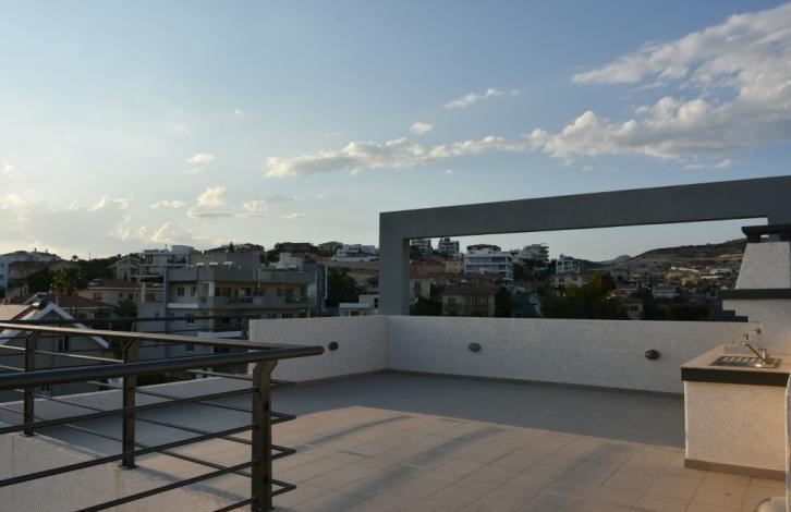 A modern 2-bedroom penthouse in a building located in the Panthea area of Limassol. New modern building with a view of the city and the sea. The apartment includes a closed plan fitted kitchen, 2 bedrooms, 2 bathrooms, storage room, covered parking, roof garden and barbecue area. Quiet residential area near all amenities, close to the private school Gramma School. There is a title.