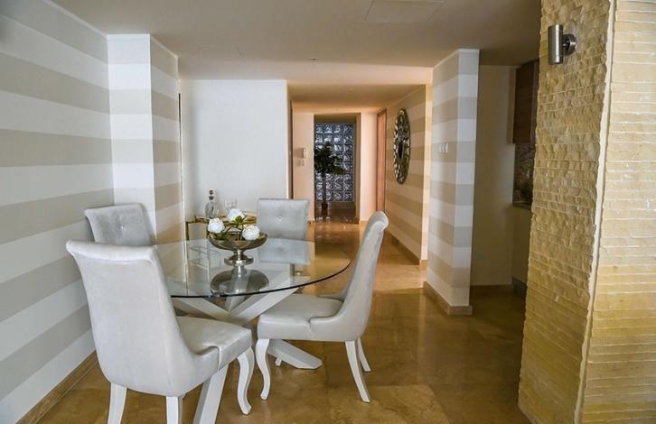 Elite 3-bedroom penthouse with garden on the roof, in a gated complex, located in Agios Tychonas, the area of the city of Limassol. The apartment includes a spacious living room with an equipped kitchen and a dining area, 3 bedrooms, 4 bathrooms and a large veranda with a beautiful panoramic sea view. Offers a luxurious style and stylish decor. The apartment is equipped with air conditioning and central heating. All residents of the complex have access to a common pool, gym and tennis court. There is a Title